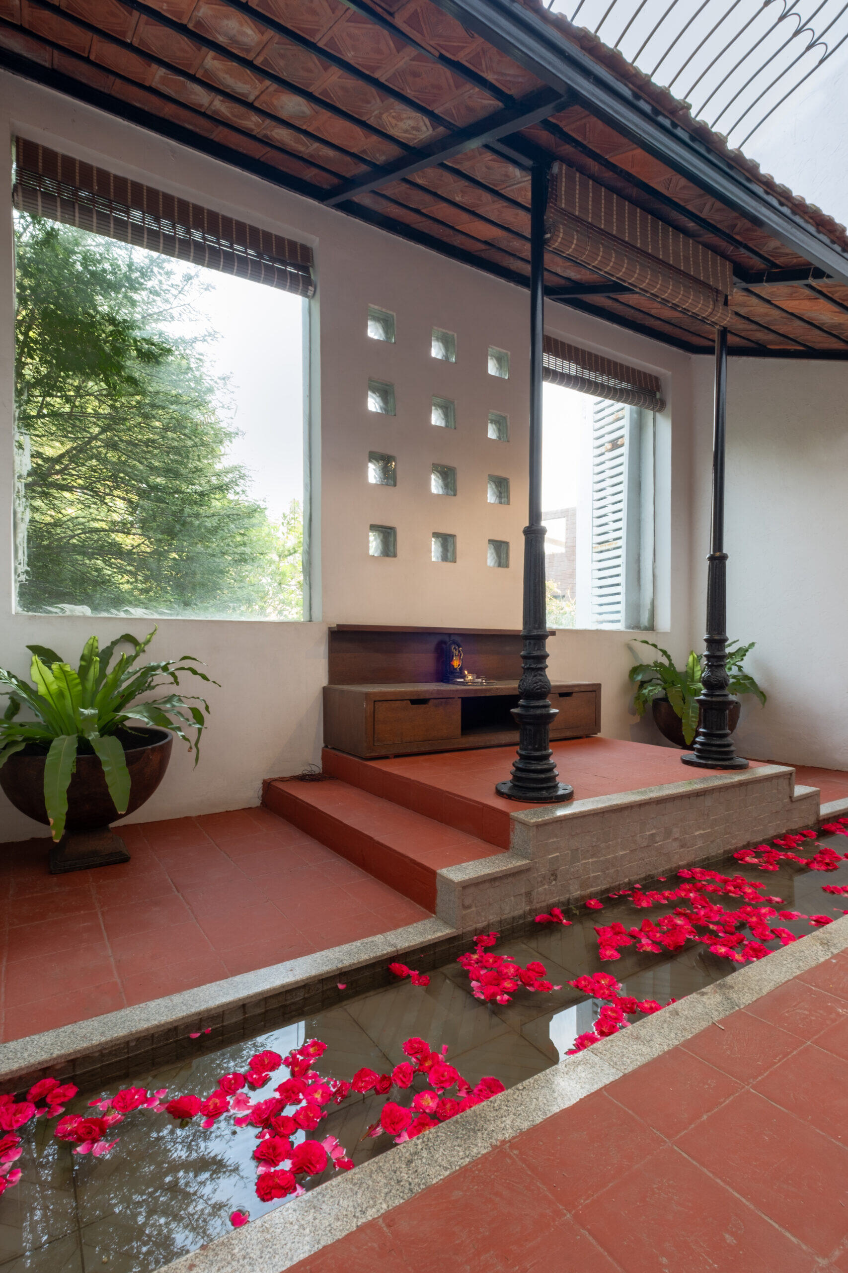 The Space A 6,500 sq ft four-bedroom villa in Hyderabad, inspired by Geoffrey Bawa’s Tropical Modernism. Bathed in natural light from east- and south-facing windows, the home con